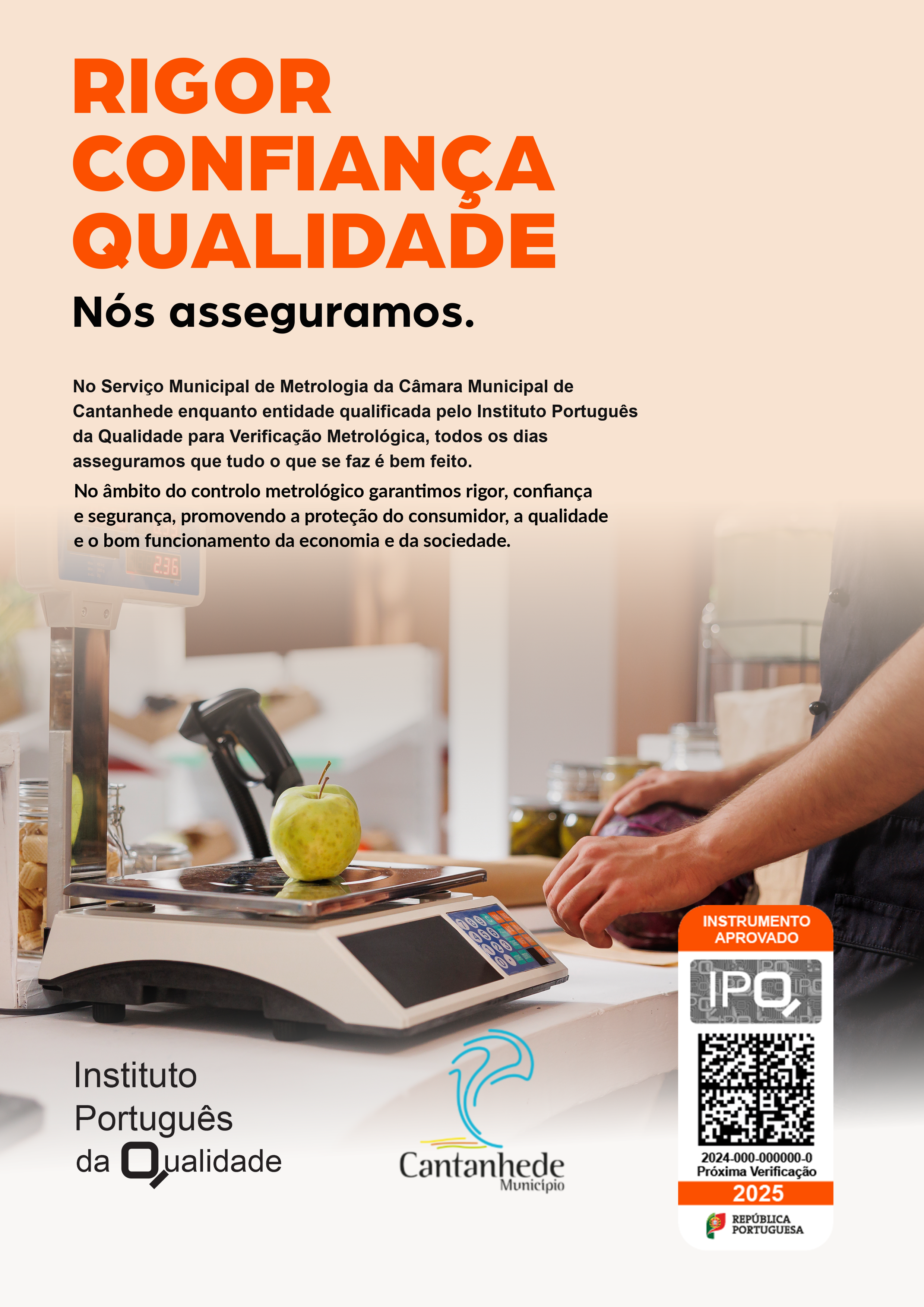 Verificação e controle dos instrumentos de medição submetidos a regulamentação legal. Durante a sua vida as pessoas terão contacto com um grande número de instrumentos de medição sujeitos a regulamentação metrológica legal que visam assegurar uma garantia pública das atividades económicas desenvolvidas. A credibilidade da medição é, portanto, especialmente necessária onde quer que exista conflito de interesse, ou onde quer que medições incorretas levem a riscos indesejáveis aos indivíduos ou à sociedade. É tarefa do controle metrológico estabelecer adequada transparência e confiança entre as partes, nas atividades comerciais, com base em ensaios técnicos imparciais e na verificação resultante dos equipamentos. O que é a Metrologia Legal? Metrologia Legal é parte da metrologia relacionada às atividades resultantes de exigências obrigatórias, referentes às medições, unidades de medida, instrumentos e métodos de medição, que são desenvolvidas por organismos competentes. Tem como objetivo principal proteger o consumidor (enquanto comprador de produtos e serviços e o vendedor, enquanto fornecedor destes) tratando das unidades de medida, métodos e instrumentos de medição, de acordo com as exigências técnicas e legais obrigatórias, garantindo desta forma a exatidão das medições realizadas. Em relação aos instrumentos de medição, a Metrologia Legal especifica exigências de desempenho, procedimentos de verificação, meios para assegurar a correta utilização das unidades de medida legalmente definidas e prescrições obrigatórias para uso. Em geral os instrumentos de medição estão na posse de um parceiro comerciante ou industrial, sendo da sua responsabilidade garantir a verificação – aferição dos equipamentos periodicamente, de acordo com a regulamentação própria, de forma a estabelecer adequada transparência e confiança entre as partes. Serviço Municipal de Metrologia O serviço municipal de Metrologia é um organismo de verificação metrológica acreditado pelo Instituto Português da Qualidade despacho nº149/2023 e Certificado com a ISO 9001: 2015-SGS,que garante o controlo metrológico, estabelece a adequada transparência e confiança com base em ensaios imparciais, a exatidão dos instrumentos de medição, garante a credibilidade no campo económico e industrial. O Serviço Municipal de Metrologia desenvolve a sua atividade, nas verificações de massas, de instrumentos de pesagem de funcionamento não automático e contadores de tempo. Como solicitar o Serviço Municipal de Metrologia da Câmara Municipal de Cantanhede Através de contacto telefónico ou preenchimento do requerimento tipo que se disponibiliza on-line. ISO 9001:2015-SGS Despacho n.º 149/2021 - serie II de 04/01/2023 Legislação Aplicável ------------------------------------------------------------ Instrumentos de Pesagem - Decreto-Lei n.º29/2022 de 7 de abril - Estabelece o Regime do Controlo Metrológico - Portaria Portaria N.º 211/2022 de 23-08 - Regulamentação das condições gerais a observar no exercício do Controlo Metrológico. - DL. 43/2017-18/04-Estabelece as regras aplicáveis à disponibilização no mercado e colocação em serviço de instrumentos de pesagem não automáticos. - DL. 45/2017-27/04-Estabelece as regras aplicáveis à disponibilização no mercado e colocação em serviço dos instrumentos de medição. - Portaria n.º320/2019 de 19 de setembro - Aprova regulamentos de controlo metrológico legal dos instrumentos de pesagem não automáticos. - Decreto-Lei n.º139/95 de 14 de junho - Estabelece requisitos relativos à marcação CE. Pesos – Medidas Materializadas em Massa - Decreto-Lei n.º29/2022 de 7 de abril - Estabelece o Regime do Controlo Metrológico, procedendo a acertos, atualizações e aditamentos ao DL n.º202/83, de 19 de Maio. - Portaria Portaria N.º 211/2022 de 23-08 - Regulamentação das condições gerais a observar no exercício do controlo metrológico. - Portaria n.º357/2023 de 14 de novembro - Regulamentação de controlo metrológico legal das medidas materializadas de massas (pesos). - OIML R/111 de 1994 - Estabelece Classes de Pesos «E1, E2, F1, F2, M1, M2, M3». Parcómetros - Decreto-Lei n.º29/2022 de 7 de abril - Estabelece o Regime do Controlo Metrológico. - Portaria Portaria N.º 211/2022 de 23-08 - Regulamentação das condições gerais a observar no exercício do controlo metrológico. - Portaria n.º363/2023 de 15 de novmbro - Regulamentação das condições específicas que se aplica aos contadores de tempo utilizados no controlo de tempo em prestação de serviços. - Regulamentação específica que se aplica a parcómetros mecânicos. Contadores de Tempo de Bilhar e Ténis de Mesa - Decreto-Lei n.º29/2022 de 7 de abril - Estabelece o Regime do Controlo Metrológico. - Portaria Portaria N.º 211/2022 de 23-08 - Regulamentação das condições gerais a observar no exercício do controlo metrológico. - Portaria n.º363/2023 de 15 de novmbro - Regulamentação das condições específicas que se aplica aos contadores de tempo utilizados no controlo de tempo em prestação de serviços. Qualificação do Serviço Municipal de Metrologia da Câmara Municipal de Cantanhede Entidade Acreditada pelo Despacho de Qualificação do Instituto Português da Qualidade nº 149/2023, de 04 de janeiro de 2023 e Certificação ISO 9001/2015 pela SGS com Cert. PT 08/02274, nos domínios e alcances discriminados no quadro seguinte: DOMÍNIO Classe de Exatidão Intervalo de Medição / Alcance Primeira Verificação e Verificação Periódica de Instrumentos de Pesagem não Automática II 40 kg Primeira Verificação e Verificação Periódica de Instrumentos de Pesagem não Automática III e IIII 4000 kg Primeira Verificação e Verificação Periódica de Massas M1 20mg a 20kg PPrimeira Verificação e Verificação Periódica de Massas M2 100mg a 20kg Primeira Verificação e Verif