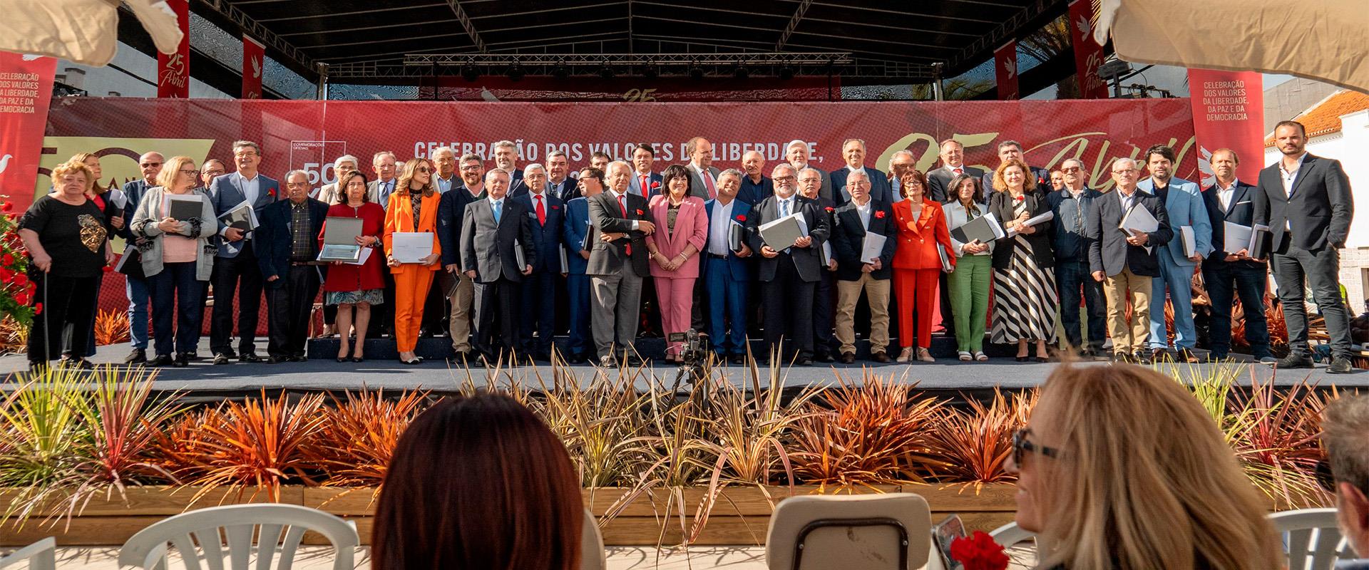 A sessão solene do 50.º aniversário do 25 de Abril ficou marcada pela entrega de um voto de louvor e reconhecimento aos membros que integraram a Comissão Administrativa criada logo após o 25 de Abril e presidida por Emílio Lopes de Matos, ou que fizeram parte dos executivos municipais enquanto vereadores.Aprovada por unanimidade pelo Executivo Municipal, esta distinção é justificada pelo “desempenhado de um papel fundamental na consolidação do regime democrático enquanto legítimos representantes do povo nos órgãos institucionais para que foram eleitos, designadamente na assunção das responsabilidades inerentes ao seu estatuto e na tomada de decisões em prol do interesse coletivo”.Helena Teodósio lembrou, a propósito, que o Município de Cantanhede já prestou o devido reconhecimento a muitos desses autarcas, presidentes das Assembleias Municipais, incluindo os presidentes da Câmara Municipal, sendo este momento certo para homenagear os que “tiveram uma participação ativa e decisiva nos processos de decisão em todos os domínios da atividade camarária, muitos deles com intervenção direta na execução dos projetos e ações dessa atividade”.“Trata-se de uma singela homenagem, que de resto lhes era devida, pelo seu espírito de missão na defesa do interesse coletivo e pelos relevantes serviços que prestaram à causa do desenvolvimento do concelho de Cantanhede, tendo contribuído desse modo para a elevação da qualidade de vida nas comunidades locais, para o incremento cultural e para o reforço da coesão social”, sublinhou.A terminar, a autarca deixou “o testemunho do meu mais vivo apreço pela elevação com que exerceram as vossas funções, honrando a instituição que serviram com brio e sentido de responsabilidade, contribuindo assim também para o prestígio do poder local enquanto fator determinante na consolidação do regime democrático”.A sessão solene contou ainda com intervenções da presidente da Câmara Municipal, Helena Teodósio, do presidente da Assembleia Municipal, João Moura, de representantes dos partidos com assento na Assembleia Municipal (PSD, PS e Chega) e do CDS-PP, que já integrou este órgão. O PCP foi convidado a intervir, mas não marcou presença por compromissos anteriormente assumidos.Do programa constaram ainda a apresentação de um monumento alusivo à efeméride, da autoria de Alves André, cuja construção vai avançar este ano, a entrega do Prémio Professor Doutor António Lima de Faria a Tiago de Almeida Caetano, e a simbólica entrega de uma bandeira do Município ao pequeno Pedro Mendes Catarino, de 6 anos, que tem fascínio por símbolos identitários.