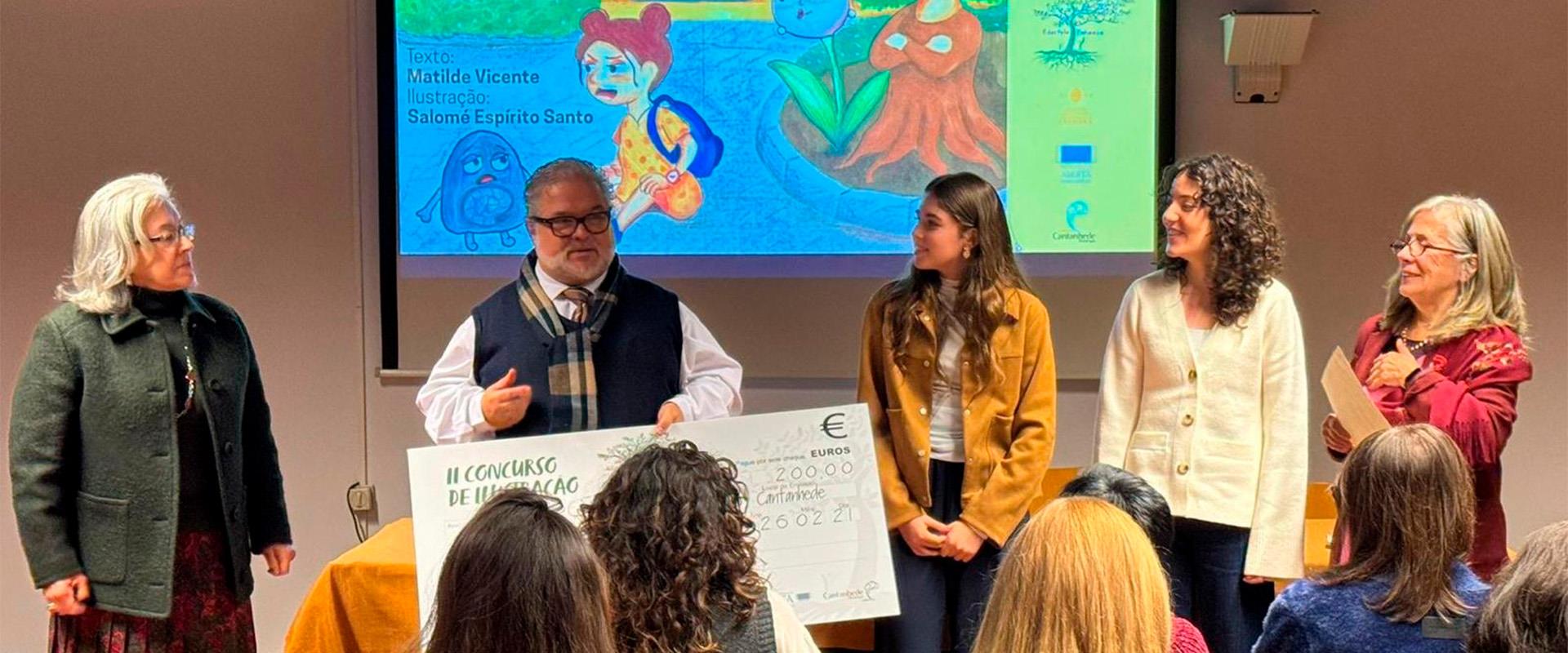 Salomé Espírito Santo, de 17 anos, aluna do curso de Artes da Escola Secundária Lima-de-Faria foi a vencedora do II Concurso de Ilustração Educ@rteNatureza, uma iniciativa integrada no projeto Educ@rteNatureza, promovido pela Faculdade de Psicologia e de Ciências da Educação da Universidade de Coimbra, pela Universidade Aberta e pela Câmara Municipal de Cantanhede.A entrega do prémio, no passado sábado, 21 de fevereiro, no auditório do Museu da Pedra, foi feita pelo vice-presidente da Câmara Municipal de Cantanhede, com os pelouros da Educação e da Cultura, Pedro Cardoso, e pela professora da Universidade de Coimbra e mentora do projeto “Educ@arteNatureza”, Teresa Pessoa.Na ocasião, Pedro Cardoso felicitou todos os participantes, enfatizando a importância de “incentivar jovens criadores a refletirem e a produzirem trabalhos” que cruzam dimensões como a educação, a cultura e o território.Natural de Fornos, freguesia de Cadima, a jovem vencedora referiu que a sua participação no concurso “foi impulsionada pelos professores”. “Decidi participar porque senti que era uma oportunidade única, que pode abrir várias oportunidades de ensino, no futuro”, adiantou.Nesta 2.ª edição, subordinada ao tema “A Pedra de Ançã”, o concurso desafiou jovens do 3.º Ciclo do Ensino Básico, Ensino Secundário e Ensino Profissional do concelho de Cantanhede a explorarem, através da ilustração, a riqueza histórica, artística e identitária deste património singular.Entre as candidaturas que reuniram as condições de participação - todas de elevada qualidade artística e expressiva - o júri distinguiu a aluna do curso de Artes, cujo trabalho se destacou pela sensibilidade estética, rigor técnico e capacidade de interpretação simbólica da pedra de Ançã enquanto elemento estruturante da memória cultural do território.A vencedora será responsável pela ilustração da obra “Se as Pedras Falassem”, da autoria de Mafalda Vicente, investigadora do projeto, reforçando assim a articulação entre criação artística, investigação científica e educação para a sustentabilidade.O II Concurso de Ilustração Educ@rteNatureza reafirma-se, deste modo, como um espaço de encontro entre juventude, criatividade e território, promovendo o desenvolvimento de competências artísticas e a consciência patrimonial nas novas gerações - em linha com os princípios da educação para a sustentabilidade e da valorização dos recursos endógenos do concelho de Cantanhede.