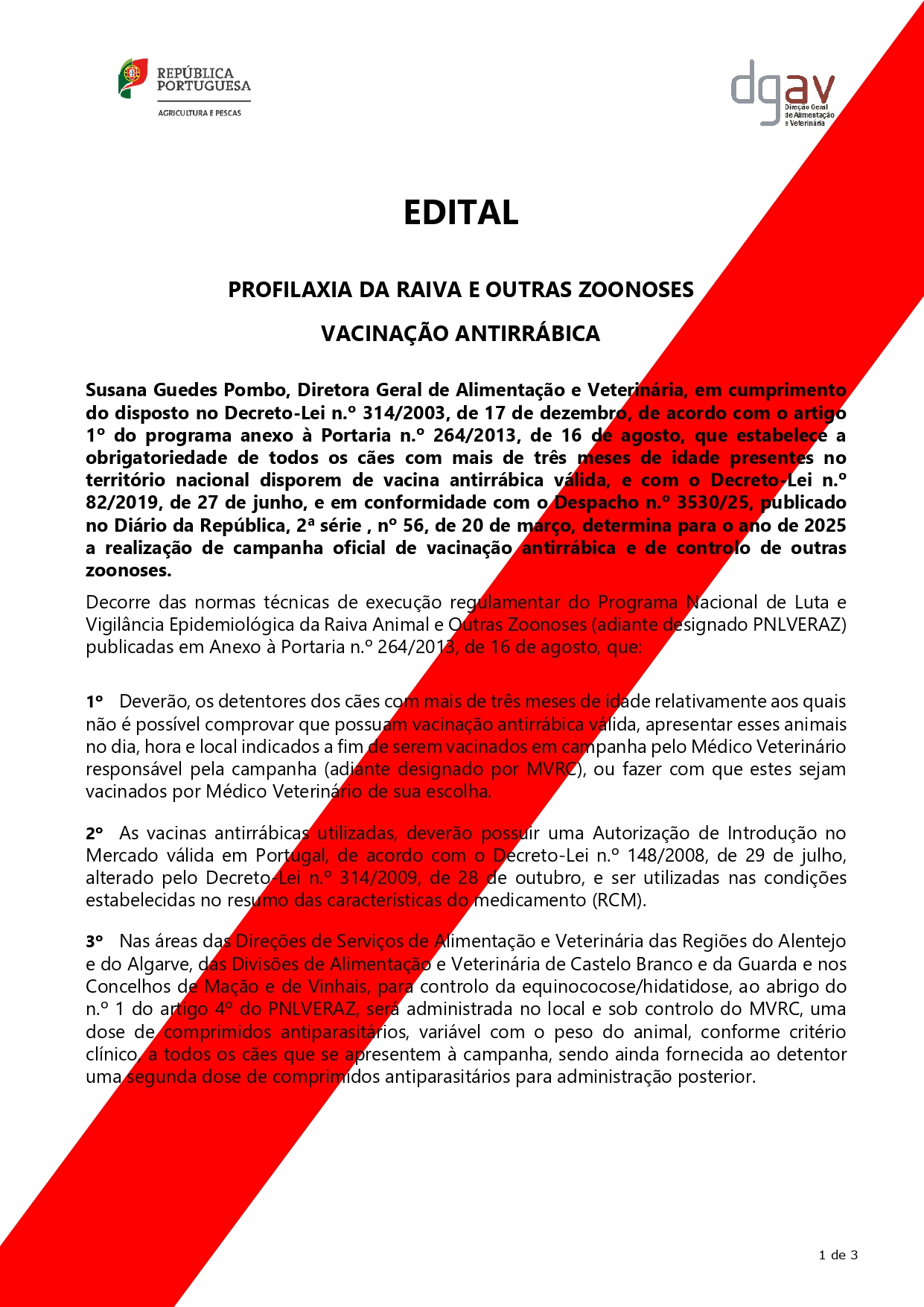 EDITAL - PROFILAXIA DA RAIVA E OUTRAS ZOONOSES - VACINAÇÃO ANTIRRÁBICA
