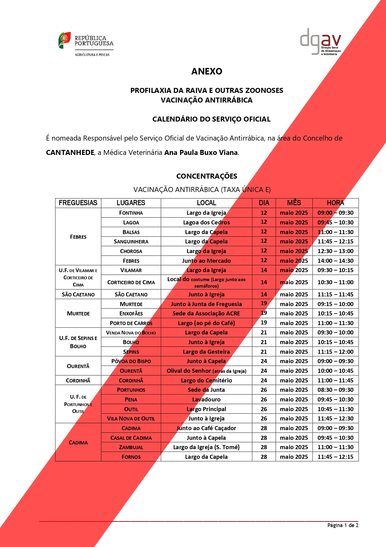 Campanha oficial de vacinação antirrábica e de controlo de outras