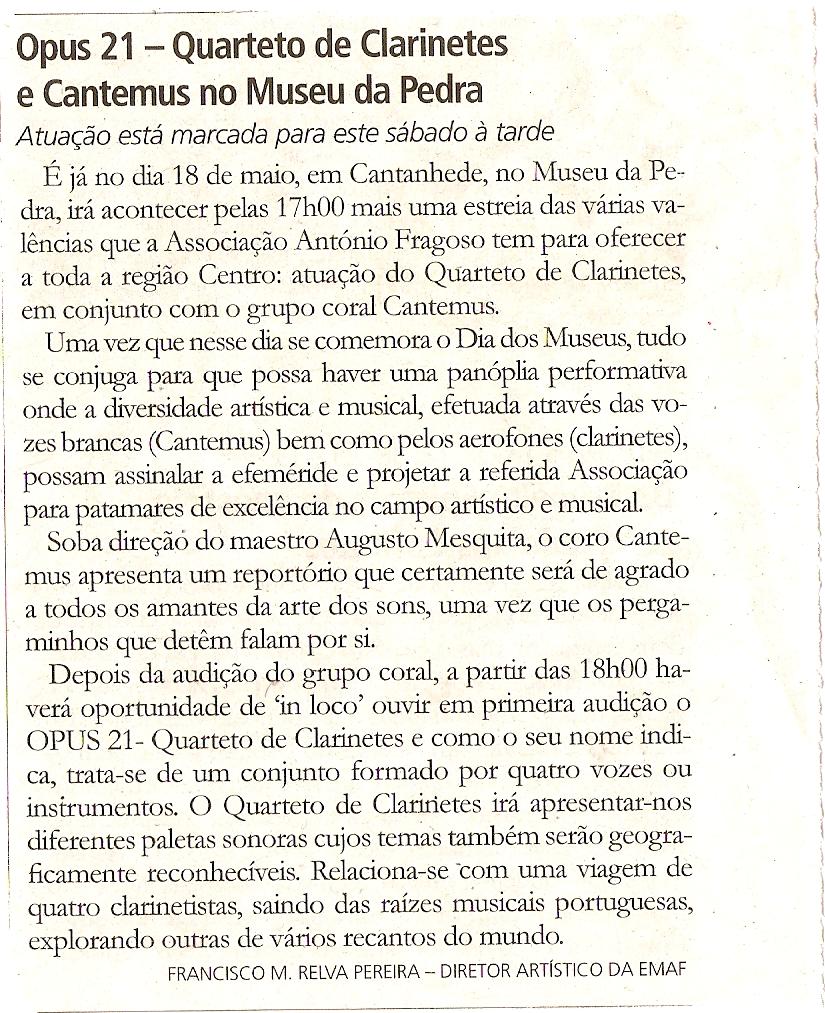 18 de maio de 2013 – Museu da Pedra – Apresentação do Projeto Op.21