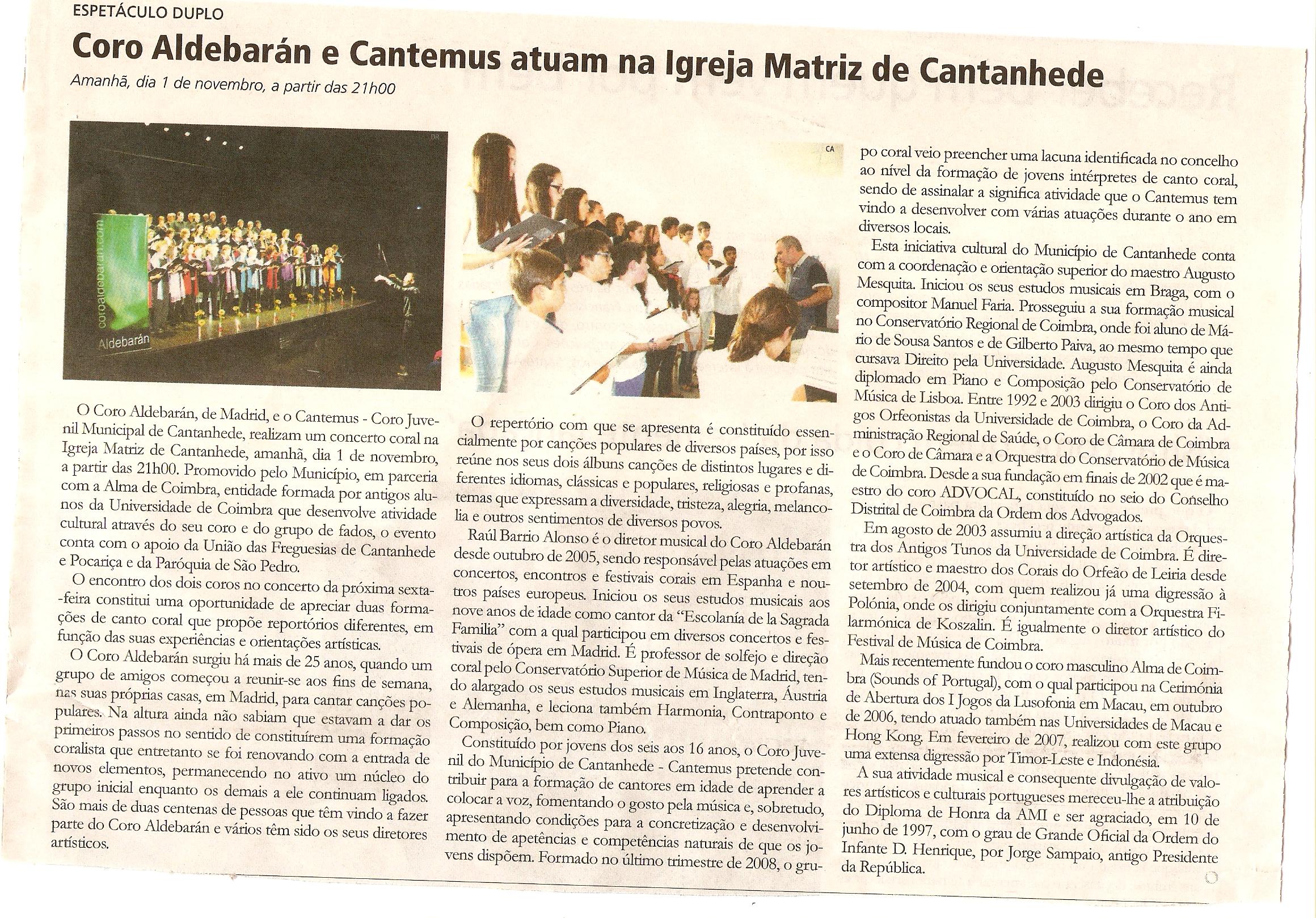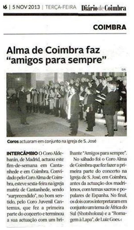 01 novembro 2013 – Igreja Matriz de Cantanhede, com o Coro Aldebarán (Madrid)