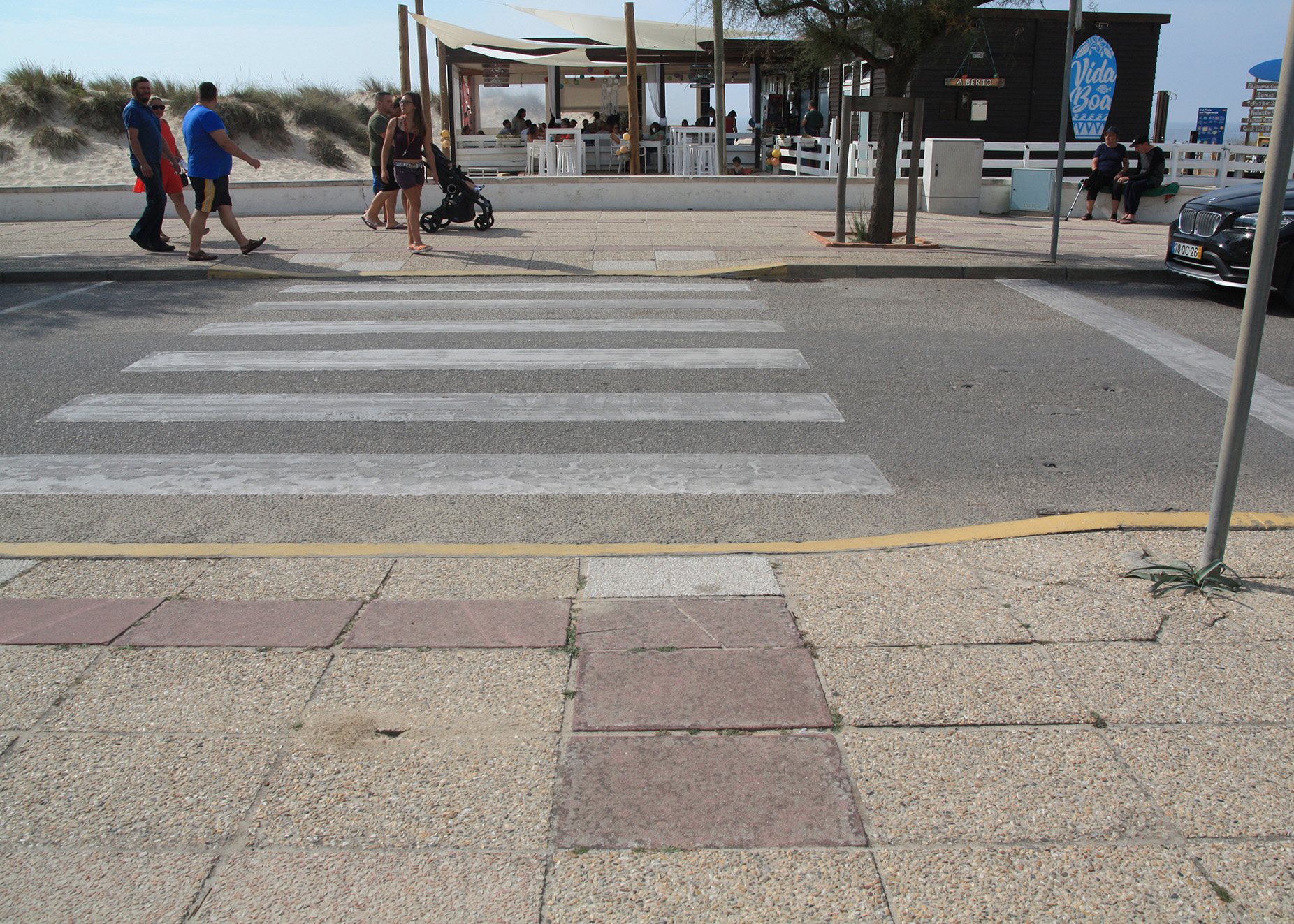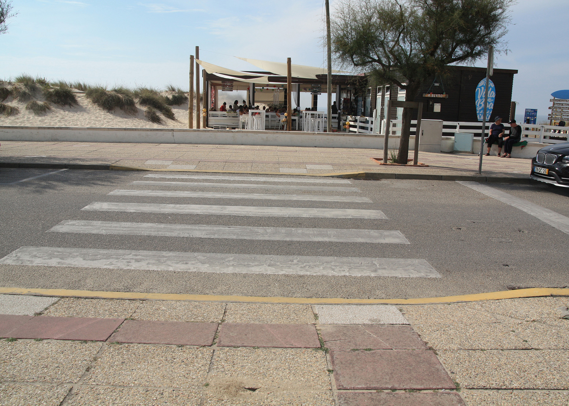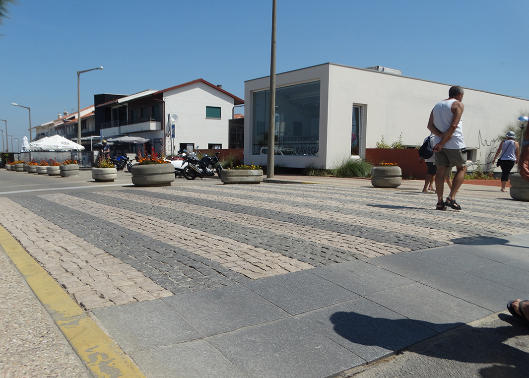 - Passadeiras sobre o areal, sempre que este exista, e, nos restantes casos, um percurso pavimentado, firme e contínuo;